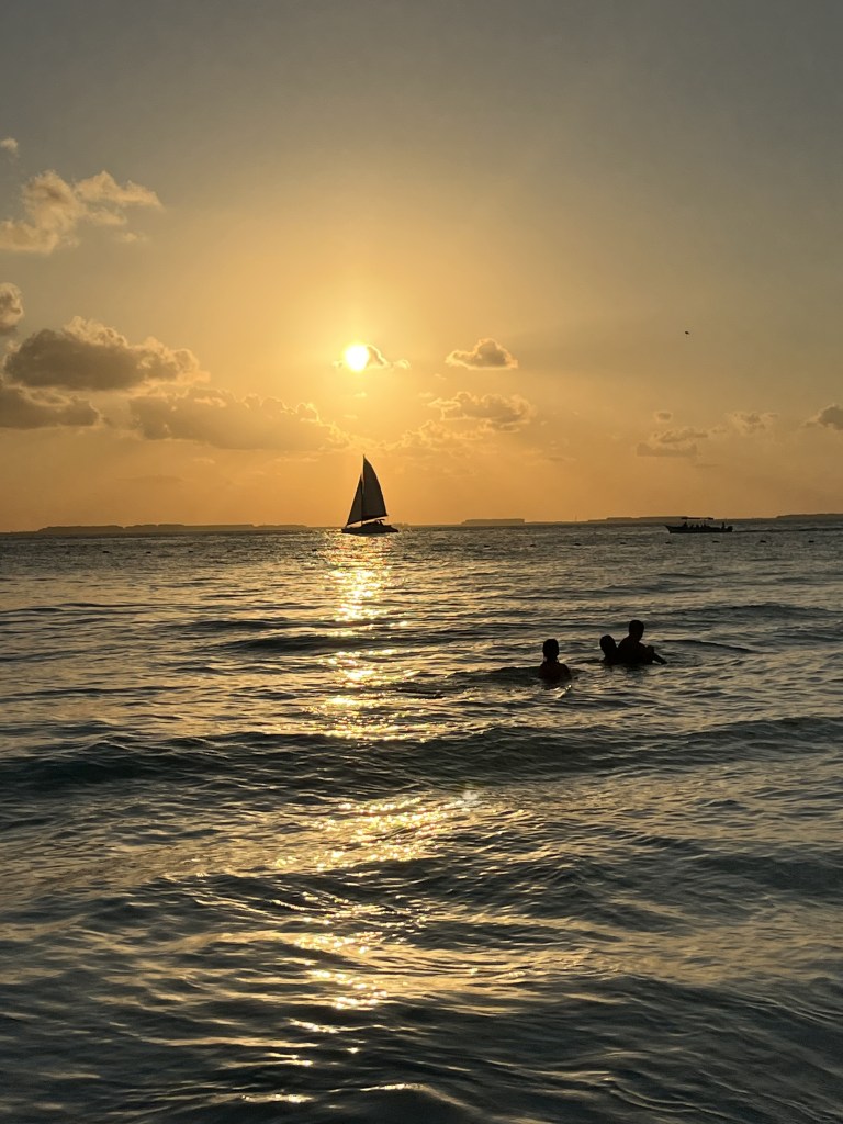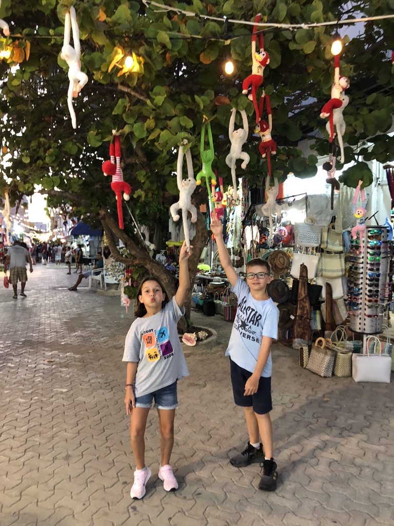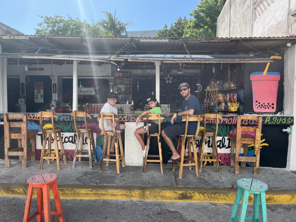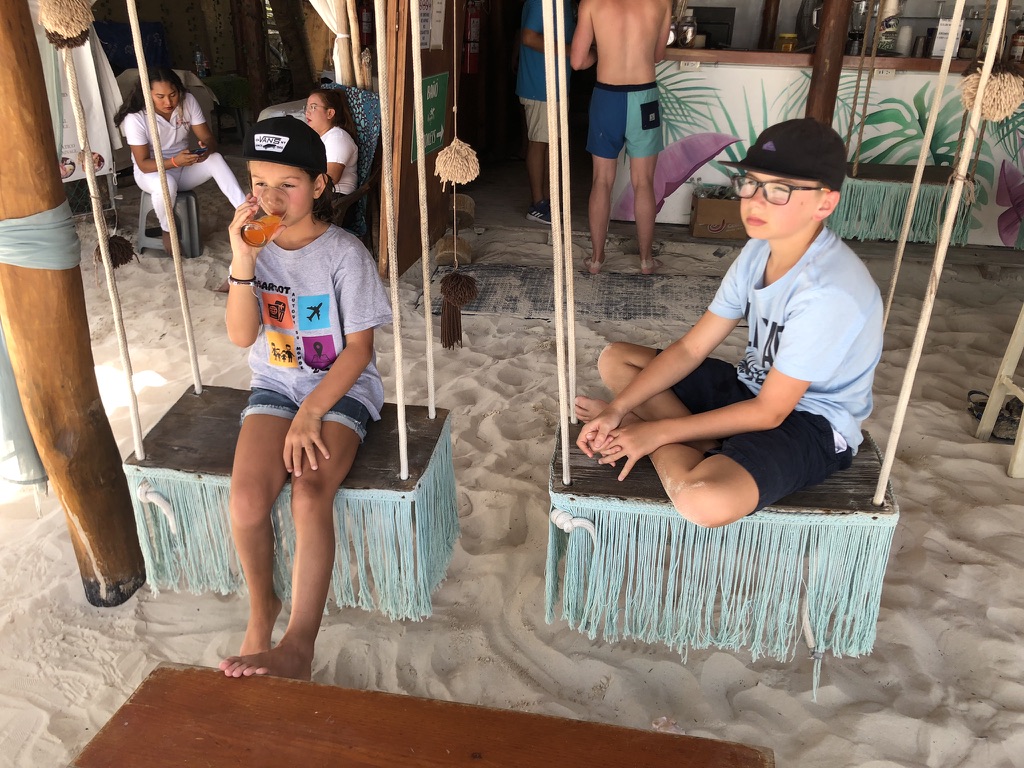 Nous avons passé les derniers jours à Isla Mujeres. Tout le monde a adoré. C’est toujours le Mexique et le Yucatan, donc pas très dépaysant en comparaison avec Puerto Aventuras, mais l’ambiance est différente. Île paradisiaque avec de l’eau bleue turquoise «flash», des levers et couchers de soleil à couper le souffle, beaucoup de touristes et des vendeurs ambulants qui nous abordaient en disant «Holà familia, welcome, want a golf cart?». Ah, et le sable est fin comme du sucre en poudre, très doux pour les pieds! Nous avons bien entendu profité des plages de l’île, notre préférée étant Playa Norte où nous avions un spot à coucher de soleil parfait.