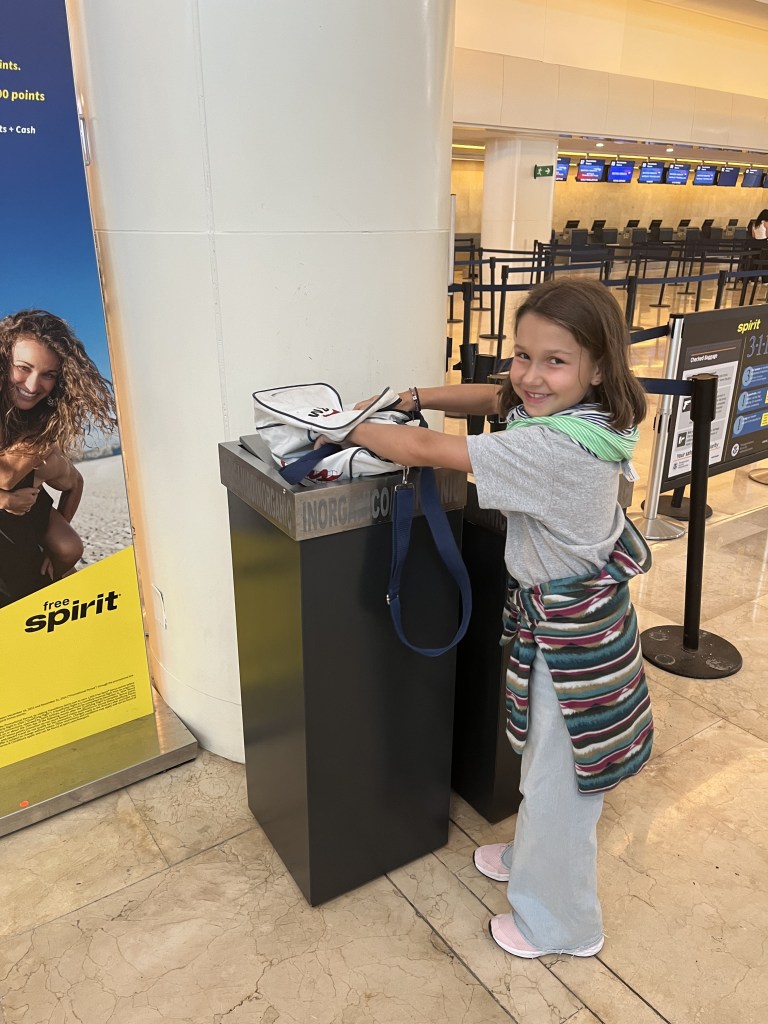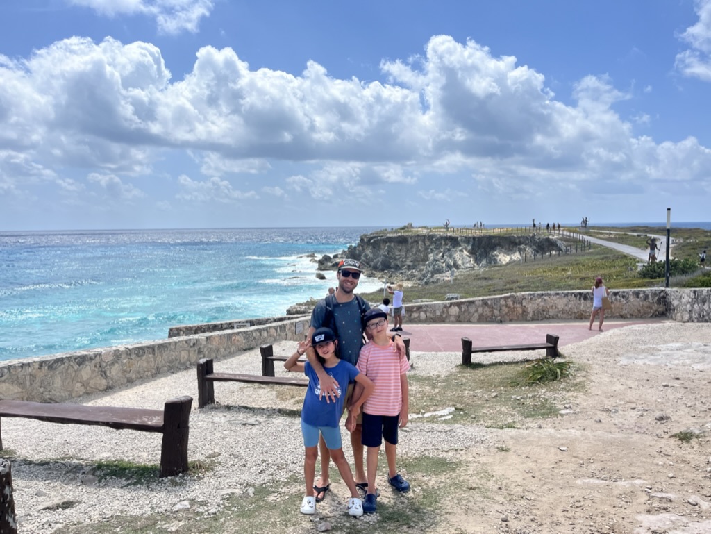 Une journée a été dédiée à visiter le sud de l’île, dont Punta Sur, où on a vu plein de lézards au grand bonheur des enfants. Margot et Laurence ont pu prendre quelques photos avec Ixchel, la déesse de l’île. Nous avons passé le reste de la journée au Beach Club Kin Ha à se baigner dans les piscines (avec glissades) et la mer. Au bout du quai devant le Beach club, il y avait une corde à Tarzan pour sauter dans l’eau cristalline. On a aussi fait un peu de snorkeling pour voir les poissons. C’est là que Léo s’est éraflé la hanche sur un corail accroché à un pilier du quai. Ouch!