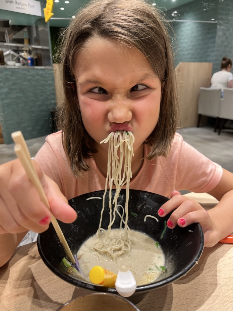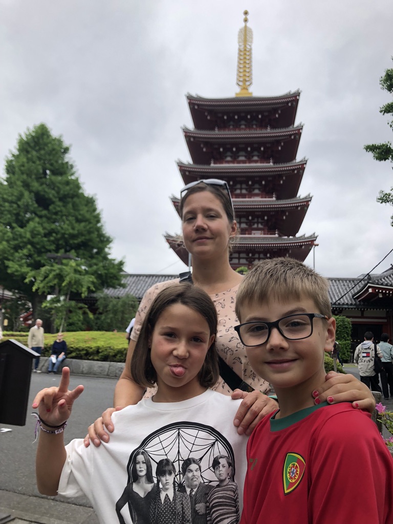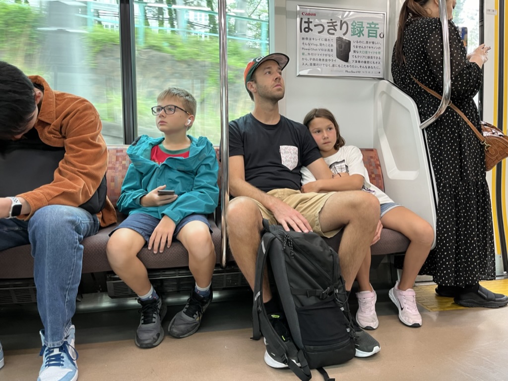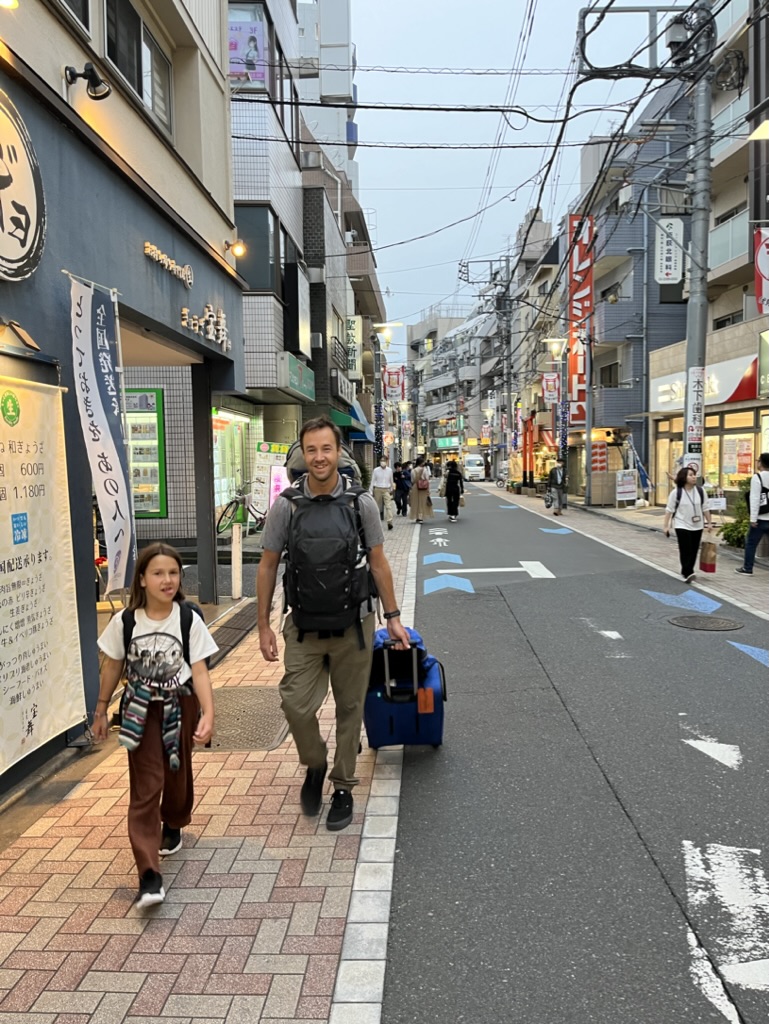 Le vol de 12 heures entre LA et Tokyo s’est somme toute très bien passé. Tout le monde a visionné plusieurs films et englouti ses repas. Arrivée à l’aéroport de Haneda, on s’achète nos cartes de transports et on prend 2 trains pour se rendre à notre Air B&B dans le quartier résidentiel de Nishi-Ogikubo. L’appartement est très bien et on s’y installe pour les 8 prochains jours. Bien fatigués de notre périple, on se couche assez tôt et le décalage horaire nous rattrape, les enfants et Laurence se réveillent à 1h du matin. On fait un peu de lecture pour passer le temps et on se prévoit une première journée pas trop chargée. Au programme, épicerie, tentative de sieste et musée Ghibli. Nous avions patienté une heure en ligne (virtuelle) durant la semaine de relâche pour obtenir nos billets. Bien heureux de commencer le séjour avec cette visite. Malheureusement, les photos sont interdites à l’intérieur. On y a passé 1 heure 30 et le WOW des enfants est d’avoir pu jouer dans une réplique de l’autobus chat qu’on peut voir dans leur film préféré: Mon voisin Totoro. On termine la journée avec notre première soupe ramen dans un restaurant près de notre gare de quartier. Mentionnons aussi notre fascination pour les toilettes, fallait avoir l’application de traduction sous la main pour les déchiffrer.