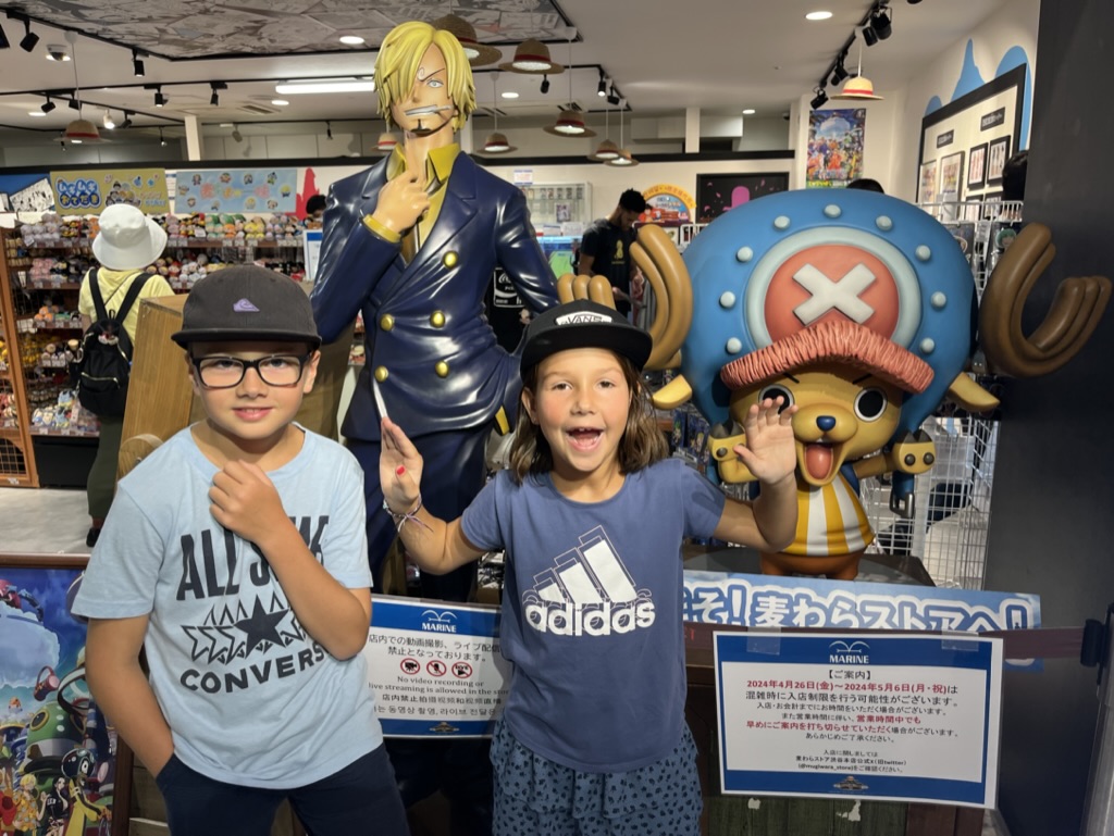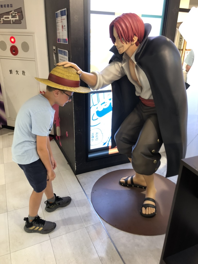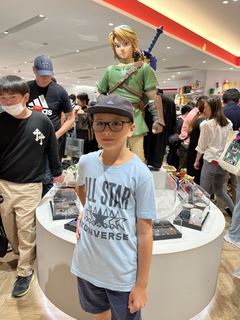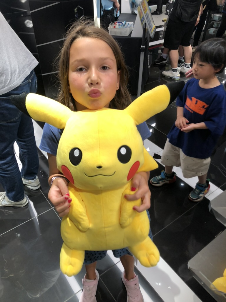 On enchaîne avec les visites obligatoires des magasins officiels de One Piece, Nintendo, Pokemon, Minecraft, etc. Cette fois-ci, tôt ou pas, il y a foule. Comme c’est Golden Week, la semaine de congé par excellence au Japon, l’expérience de magasinage est plus ou moins agréable. Pour diner, Laurence nous trouve un Izakaya végane au food court (Yokocho), donc Margot peut manger de tout sans inquiétude.