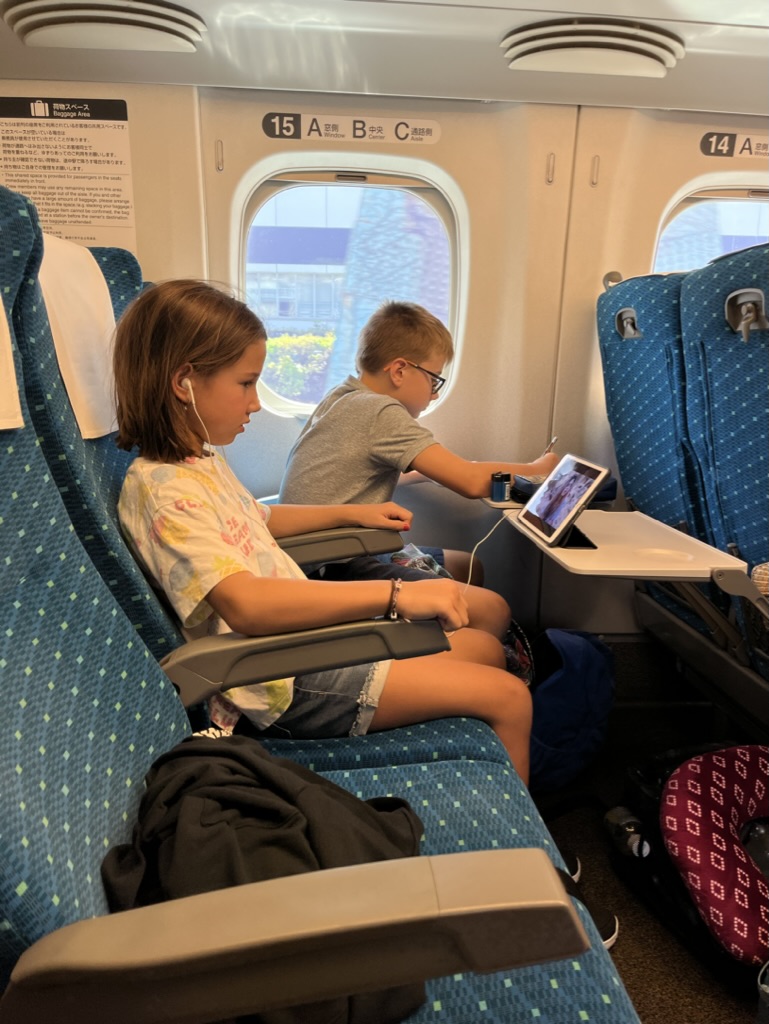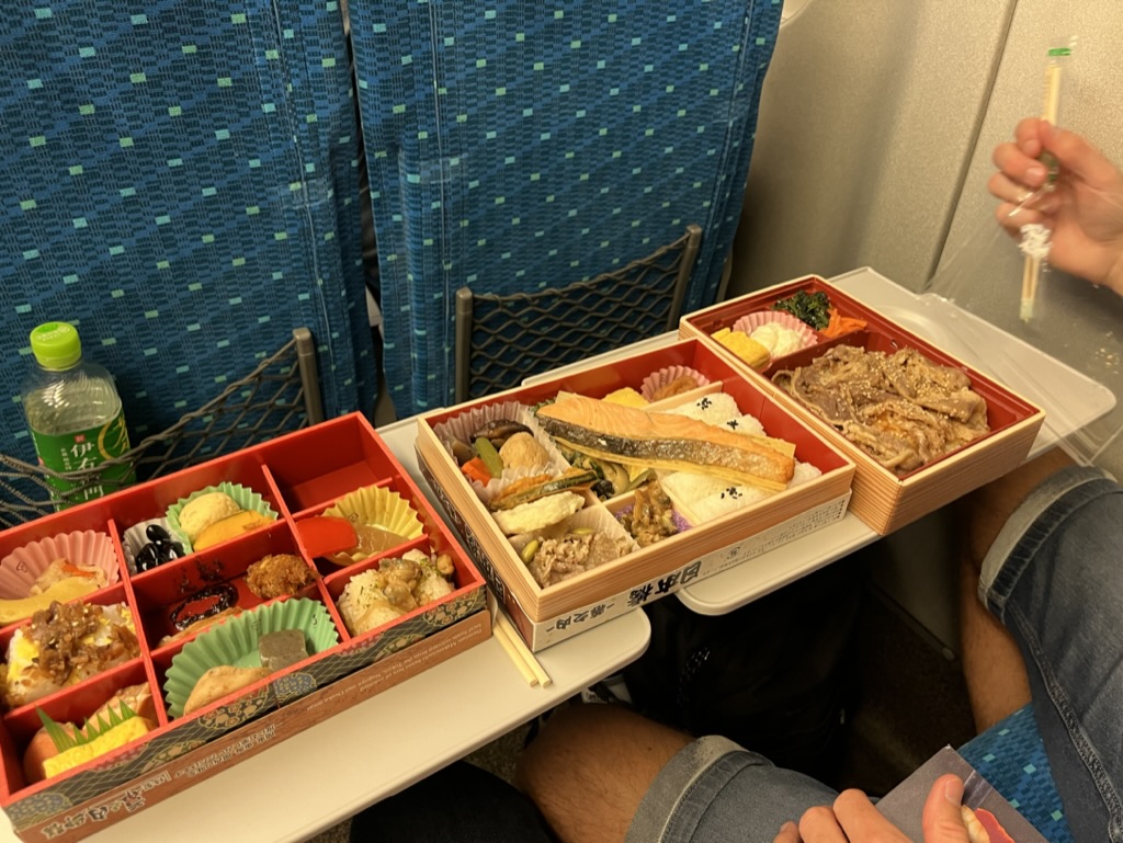 C’est le temps de quitter Tokyo. On a vraiment aimé notre petit quartier de Nishi-Ogikubo ainsi que la découverte de tous les quartiers de la grande ville. Par contre, tout ce va et vient a été pas mal fatiguant. Nous avons tous hâte de découvrir une nouvelle région du Japon. On réussit à bien naviguer Tokyo Station avec nos valises et se rendre au quai d’embarquement de notre Shinkansen à destination de Nagoya. Nous sommes prêts avec nos bentos box pour notre diner et durant le trajet, nous sommes gâtés par une vue magnifique sur le mont Fuji.