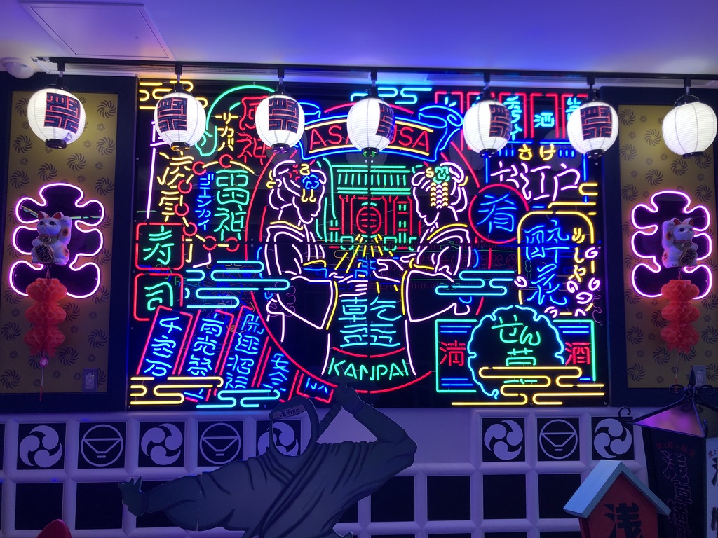 Pour dîner, des sushis dans un autre Yokocho qui vient d’être construit, très moderne. On continue la visite vers la décevante Underground City. On me l’avait vendue comme un retour dans le temps au Japon des années 80 avec un feel de rétro sci-fi. En réalité, c’est un vieux corridor de métro avec des magasins et restos fermés. On se reprend avec une marche sur le bord de la rivière Sumida accompagnée d’une belle vue sur le Tokyo Skytree au loin. Après une journée assez chargée, on se fait un souper plutôt simple. Une commande Uber Eats dans un petit comptoir de bols Uodon de notre quartier.