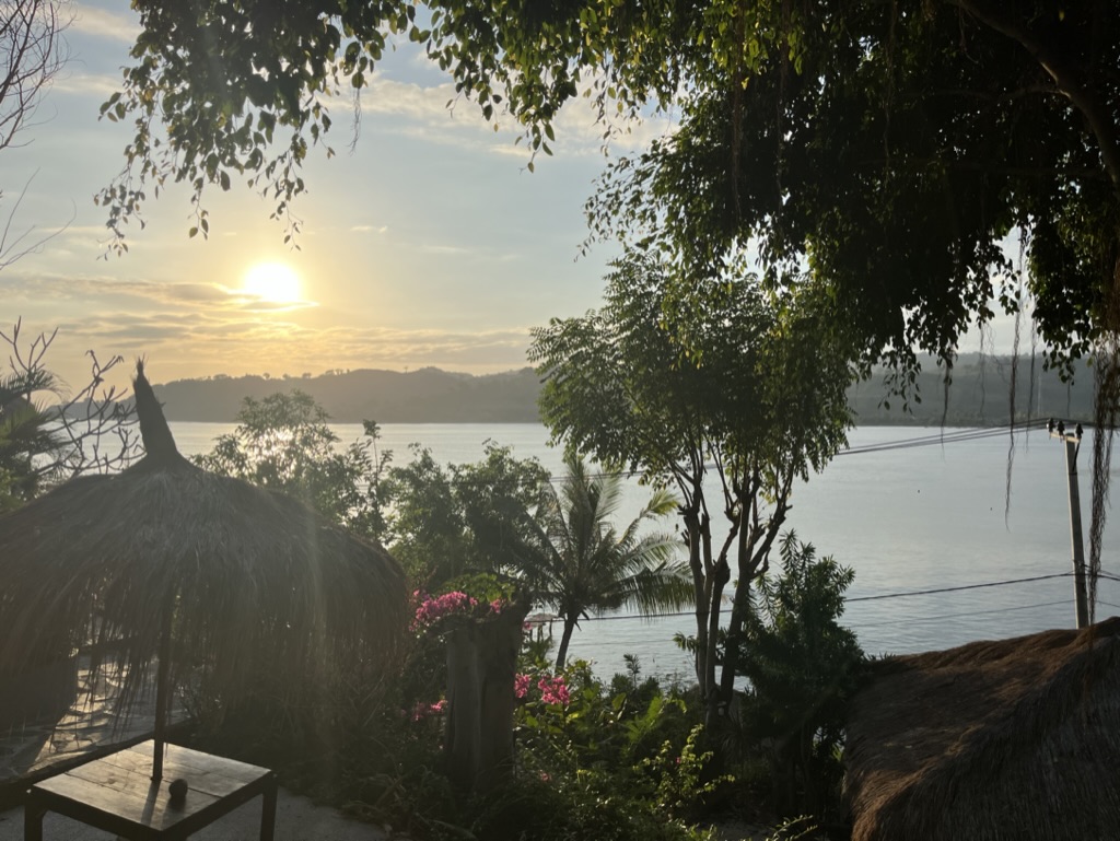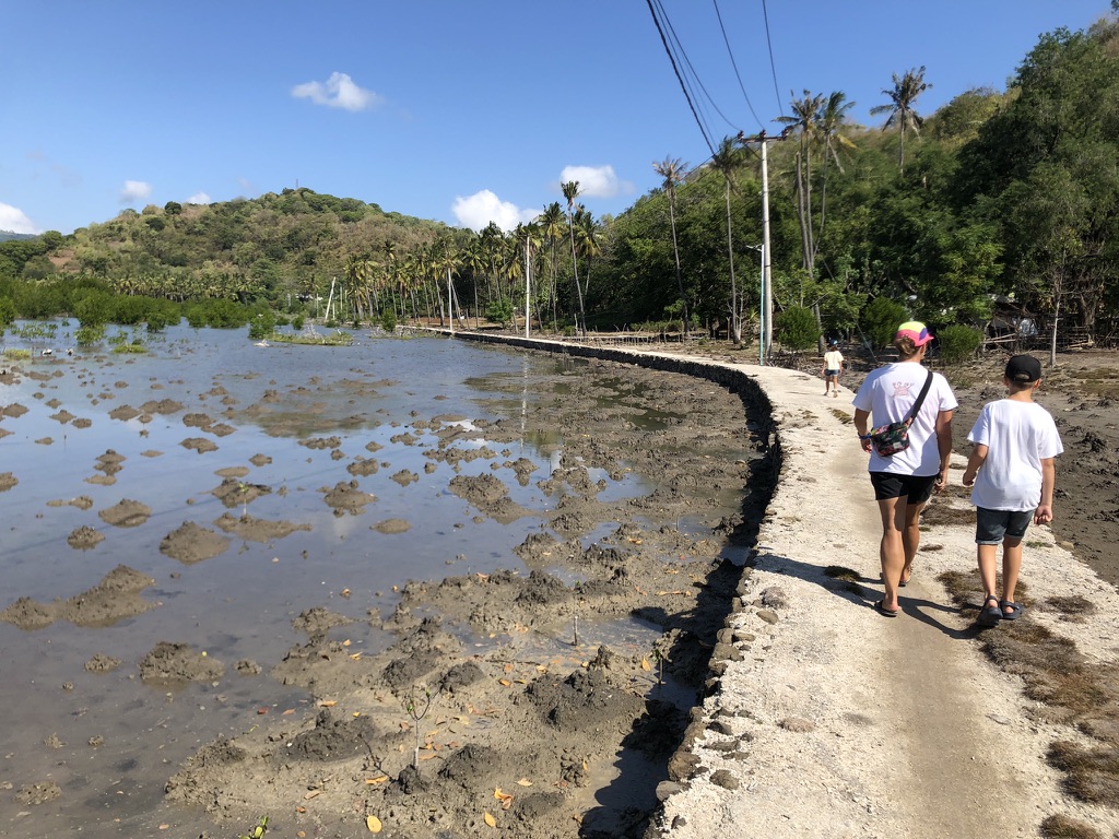 À notre arrivée au quai, un petit bateau nous attendait pour nous amener à l’auberge Tanjunan. Comme il y a peu ou presque pas de routes sur l’île, le bateau est le moyen de transport privilégié. Alain, le propriétaire français de l’auberge, nous a bien accueilli à notre arrivée.