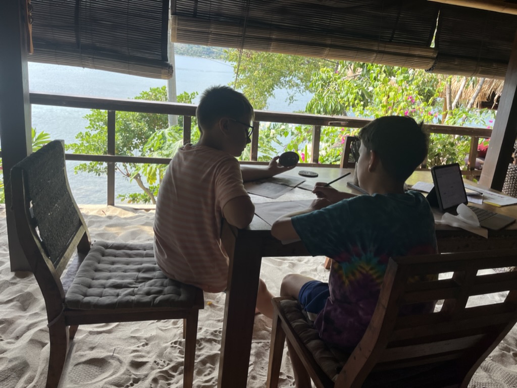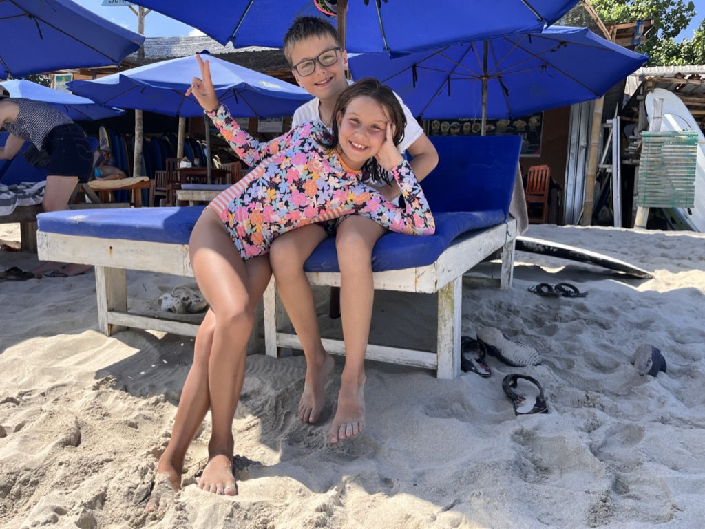 Le 14 juin fut un grand jour, fin des classes pour les enfants, hourra! Et c’était aussi l’heure de quitter Gili Gede pour notre semaine de surf à Selong Belanak. Les enfants étaient tristes de déjà quitter leurs nouveaux amis, mais ça fait partie de l’expérience du voyage. Nous nous sommes échangés coordonnées et adresses de blogues.