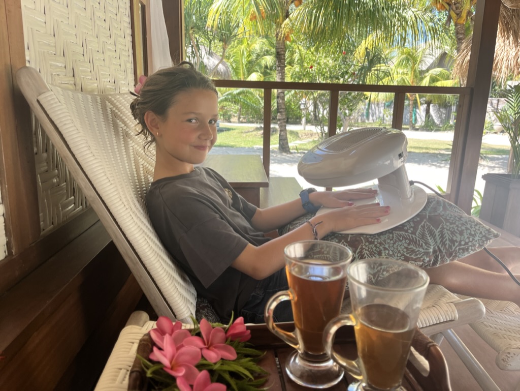 Le 17 juin nous avons célébré les 8 ans de Margot. Sortie au spa entre filles avec massage et pédicure, «Yes Day» où on a dû dire oui à toutes ses demandes (qui ont été très raisonnables étonnamment et consistaient principalement à boire beaucoup de boissons sucrées) et souper au magnifique Laut Biru. Merci à Anja pour la recommandation. Belle journée dont elle se souviendra longtemps.