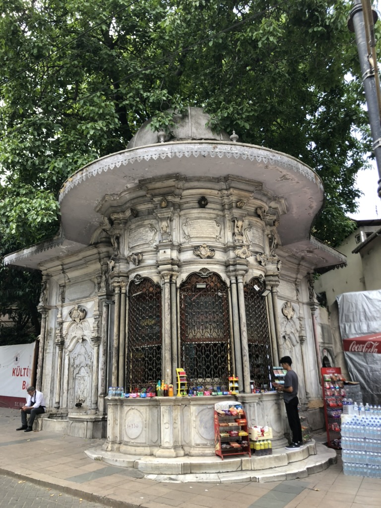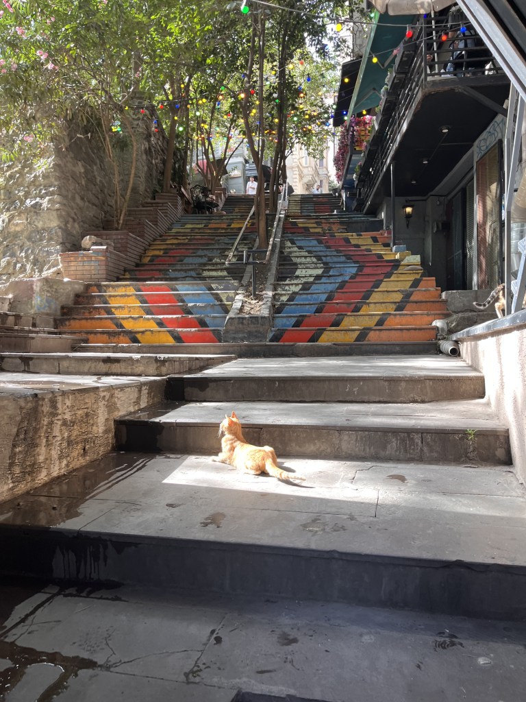 Pour débuter cette journée, nous avons marché dans un coin du quartier Beyoglu que nous n’avions pas encore arpenté. À notre arrivée dans les rues plus touristiques, on constate qu’il y a des policiers partout. Certaines artères sont barrées par des clôtures de métal. On se demande bien ce qui se passe. Un événement?! Après quelques recherches, on apprend qu’une parade de la fierté LGBTQ+ est prévue, mais que c’est formellement interdit par le gouvernement turc, donc la police est là pour surveiller et empêcher que ça se produise. Allo les droits et libertés… Finalement il y aura eu une courte parade de 10 minutes avant qu’elle soit réprimée.