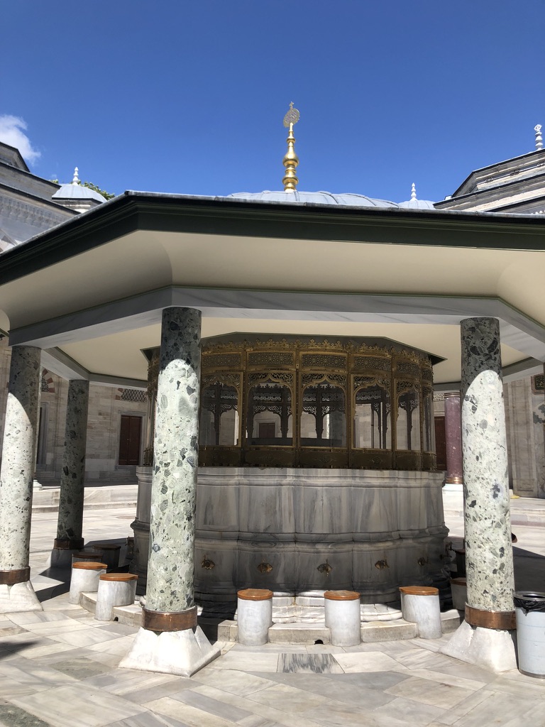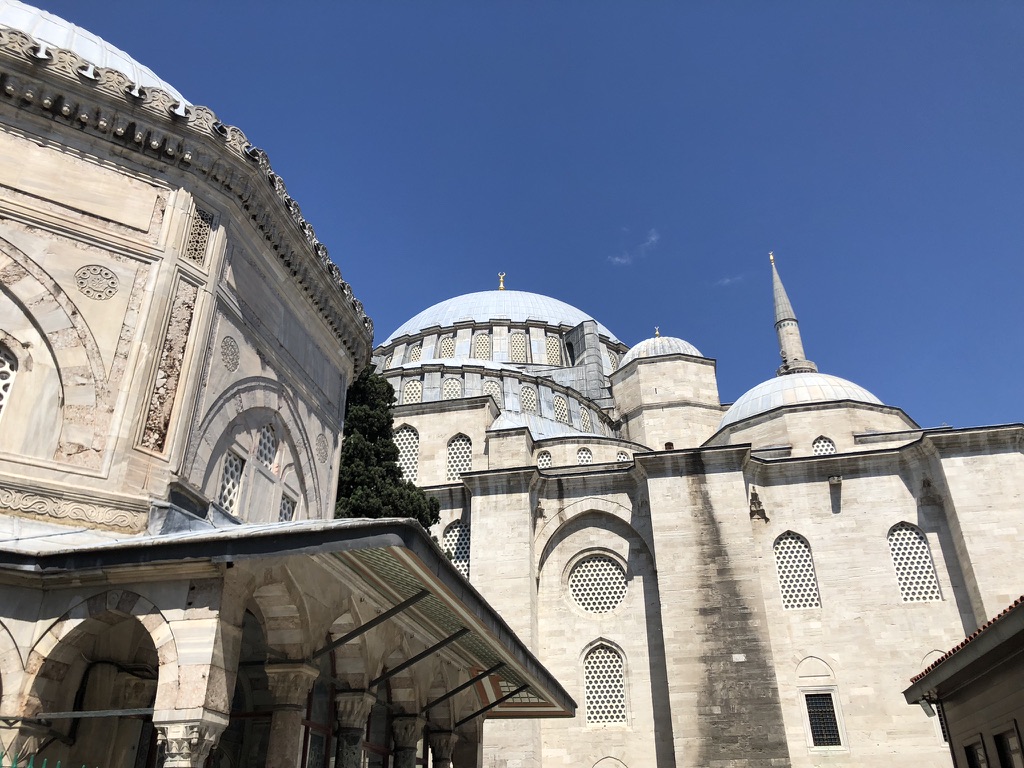 On visite ensuite le bazar des livres usagés tout juste à la sortie du grand bazar, puis ensuite on se dirige vers la mosquée Suleymaniye. WOW! Les jardins autour de la mosquée sont magnifiques, la vue du belvédère aussi, on a un bon vent et on peut aller à l’intérieur gratuitement. C’est superbe! On croise sur notre route les édifices d’une des universités d’Istanbul et on se rend jusqu’à l’aqueduc de Valens, une petite mise en bouche pour le pont du Gard que nous verrons en France!.