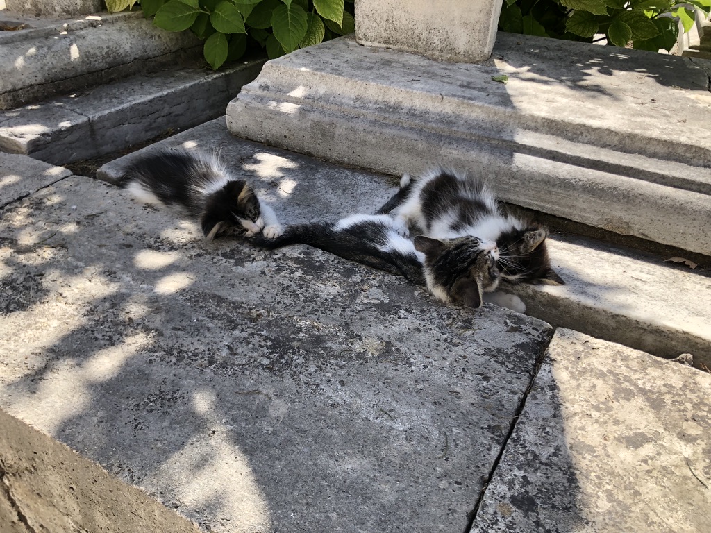 On ne peut terminer sans vous parler des chats qu’il y a PARTOUT dans la ville ce qui a beaucoup plu aux enfants! Quelques images en vrac ci-dessous, avec des ti-minous!