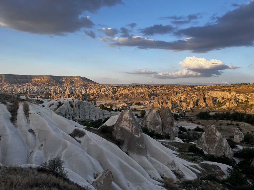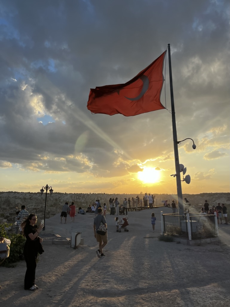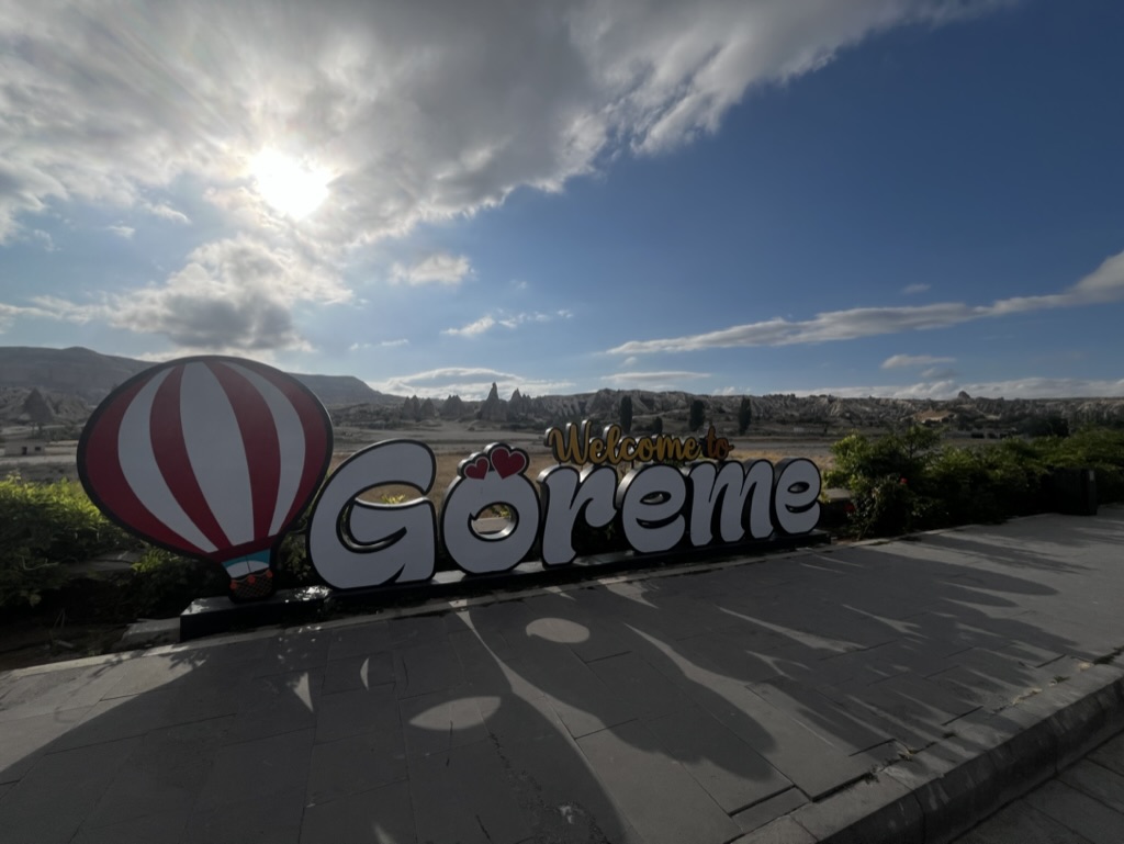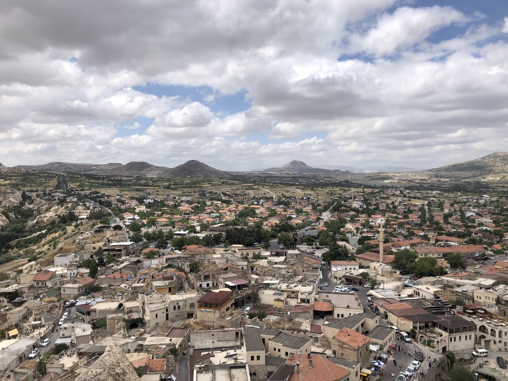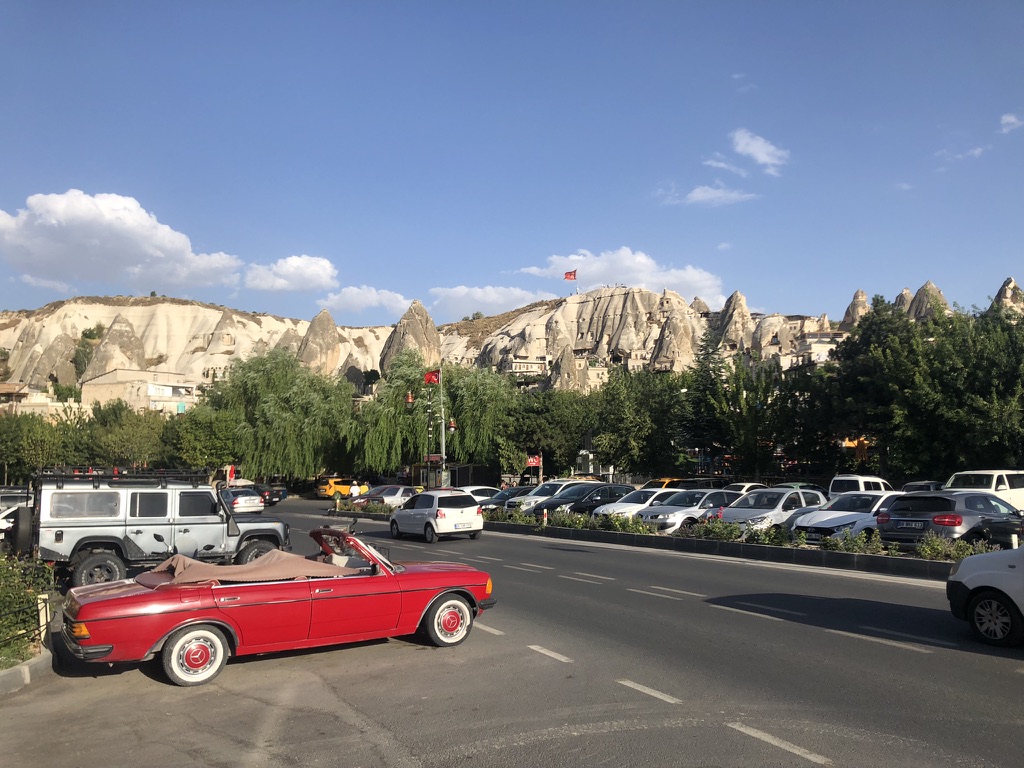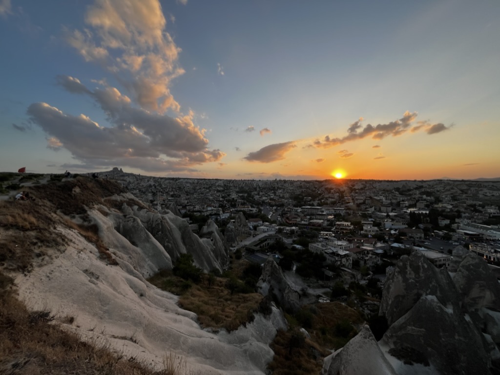 Malgré tout, nous avons pu profiter au maximum de chaque journée tel que vous pouvez l’observer dans les quelques photos sélectionnées. Donc, après un court vol d’environ 1h15 au départ d’Istanbul, ainsi que d’une heure de transfert depuis l’aéroport, nous sommes arrivés à notre charmant hôtel, le Caravanserai Inn. Après notre installation, on sort en fin de journée arpenter la rue principale de Göreme et prendre une boisson en terrasse tout en appréciant les vues magnifiques des montagnes à l’horizon.