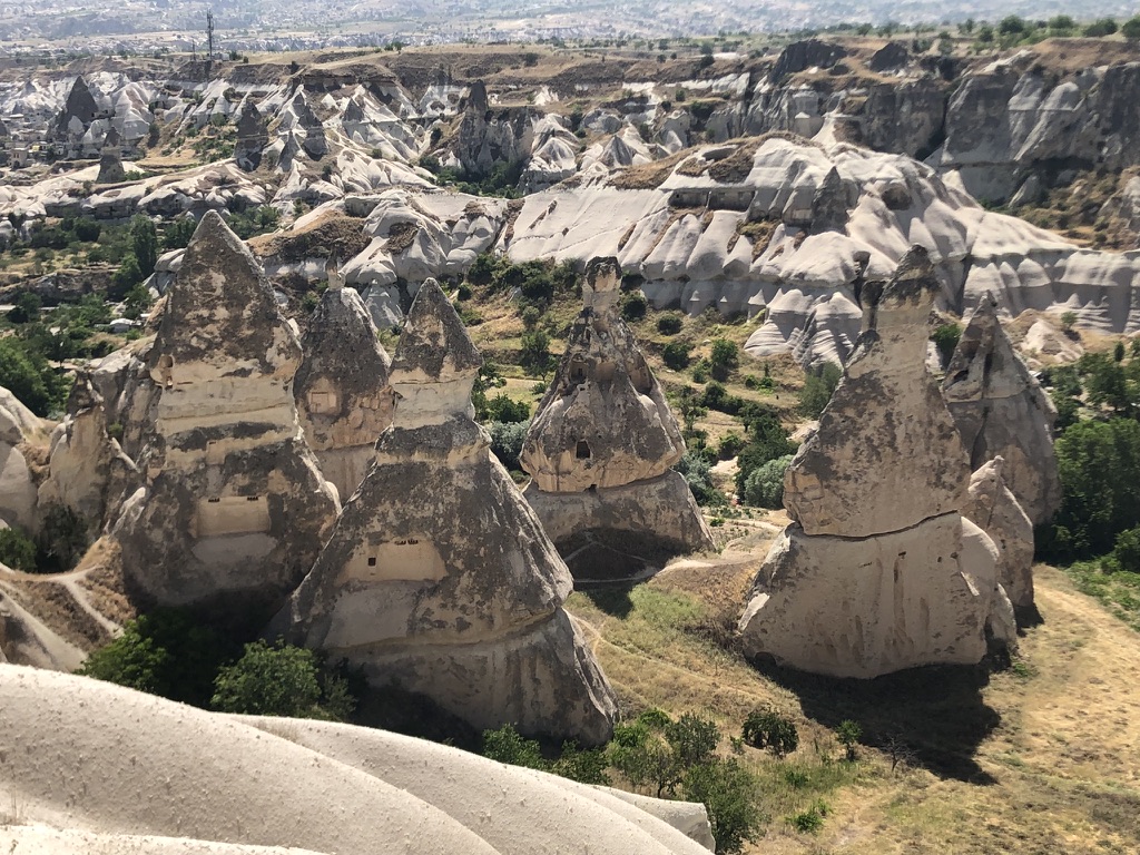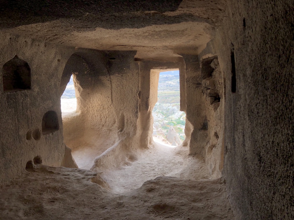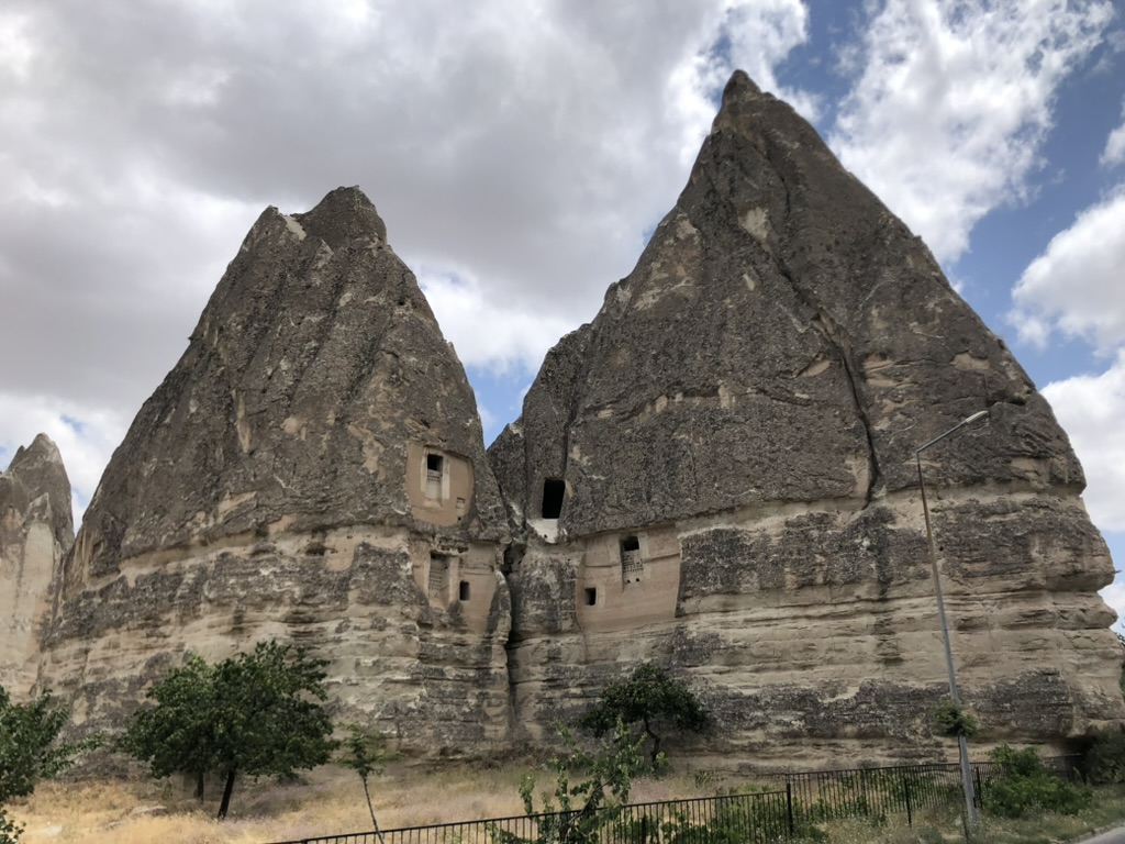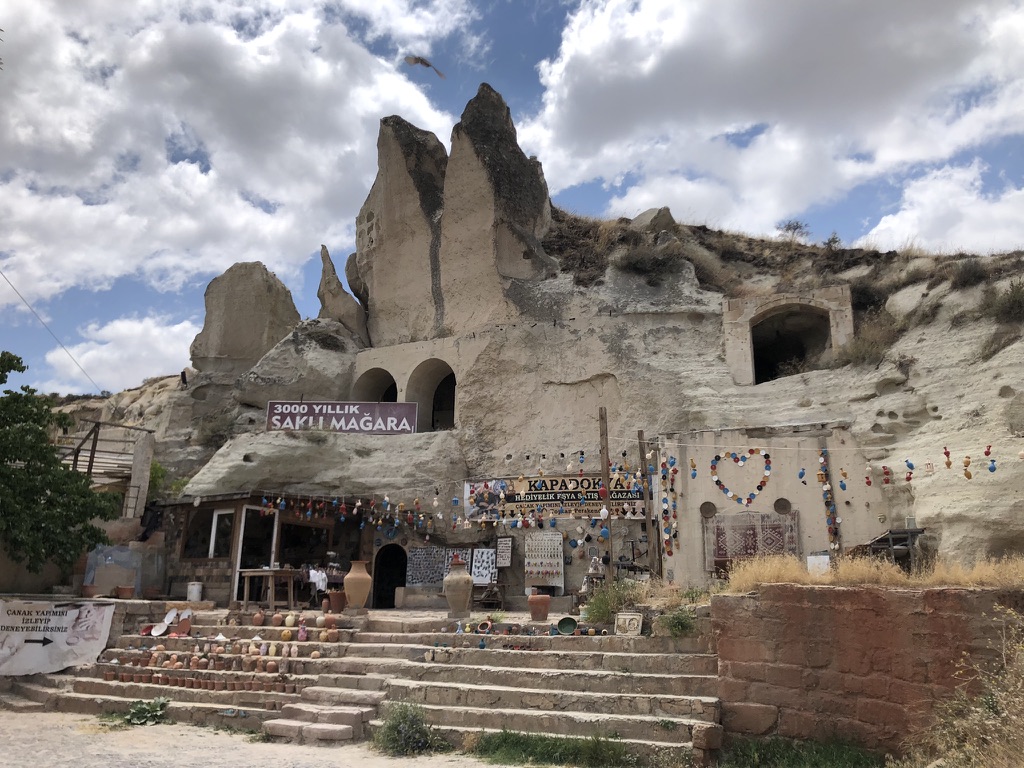 Voici le résumé de notre court séjour dans la belle région turque de la Cappadoce, ce qui signifie «pays des beaux chevaux de race». La région est surtout connue pour son territoire constitué de formations rocheuses impressionnantes. L’activité de choix est d’observer un lever de soleil à bord d’une montgolfière. À en voir les photos, cela a l’air absolument magnifique, mais pour la modique somme de 250 euros par personne, nous avons décidé de ne pas le faire. De toute façon, il y a eu trop de vent durant les 4 jours où nous étions présents en Cappadoce, donc aucune montgolfière ne pouvait décoller.