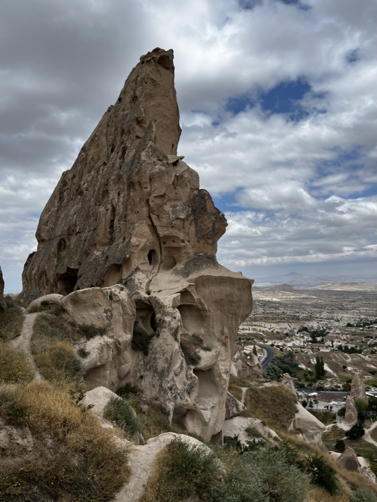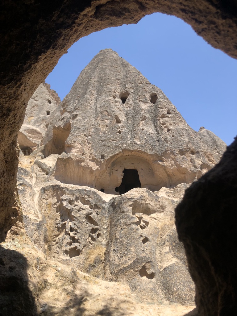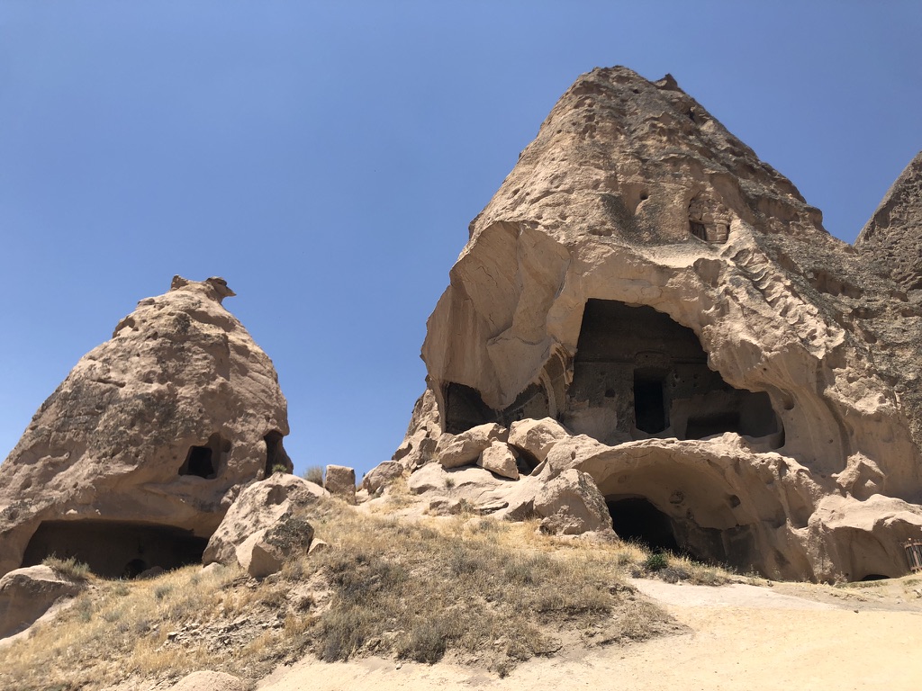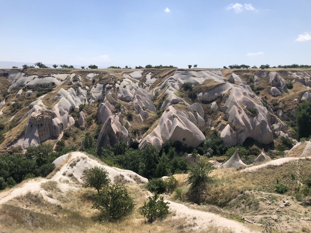 Voici le résumé de notre court séjour dans la belle région turque de la Cappadoce, ce qui signifie «pays des beaux chevaux de race». La région est surtout connue pour son territoire constitué de formations rocheuses impressionnantes. L’activité de choix est d’observer un lever de soleil à bord d’une montgolfière. À en voir les photos, cela a l’air absolument magnifique, mais pour la modique somme de 250 euros par personne, nous avons décidé de ne pas le faire. De toute façon, il y a eu trop de vent durant les 4 jours où nous étions présents en Cappadoce, donc aucune montgolfière ne pouvait décoller.
