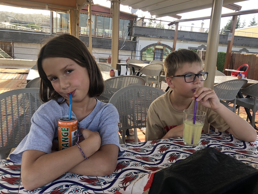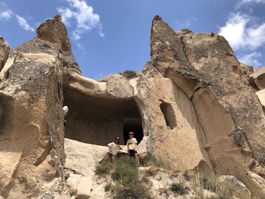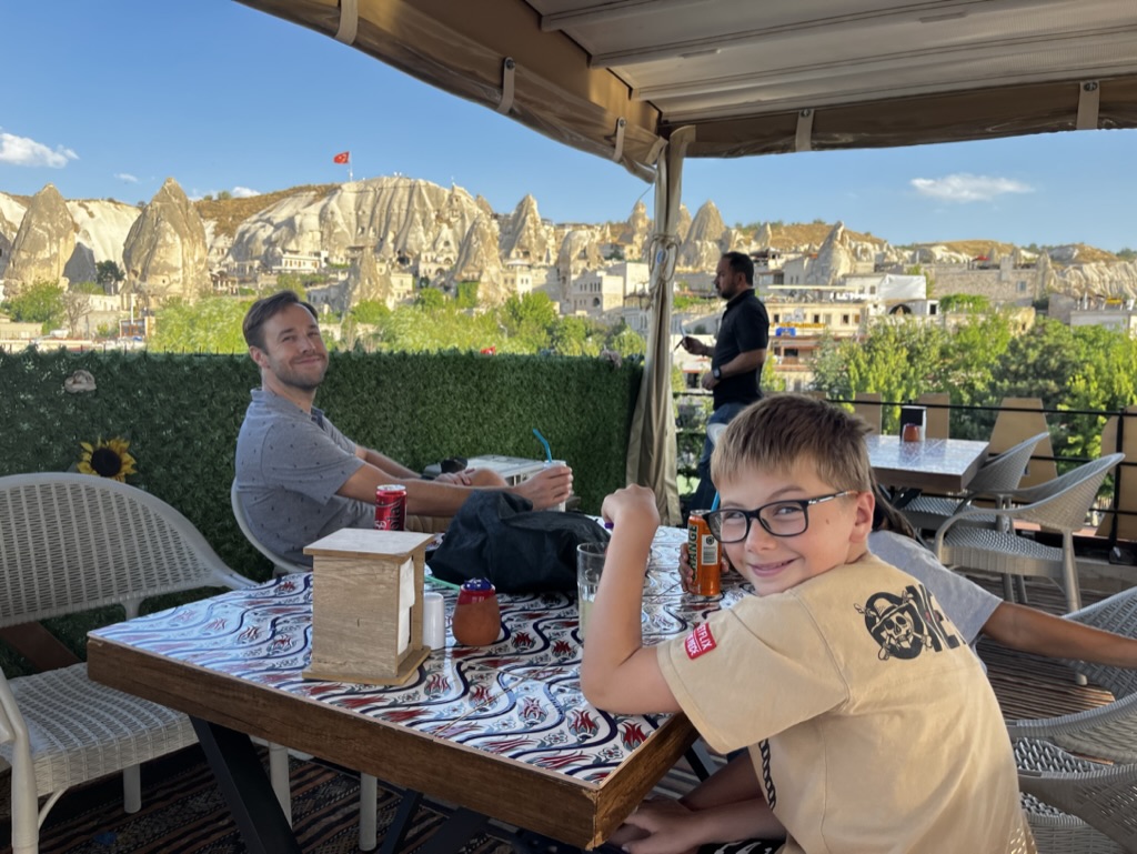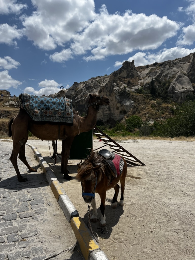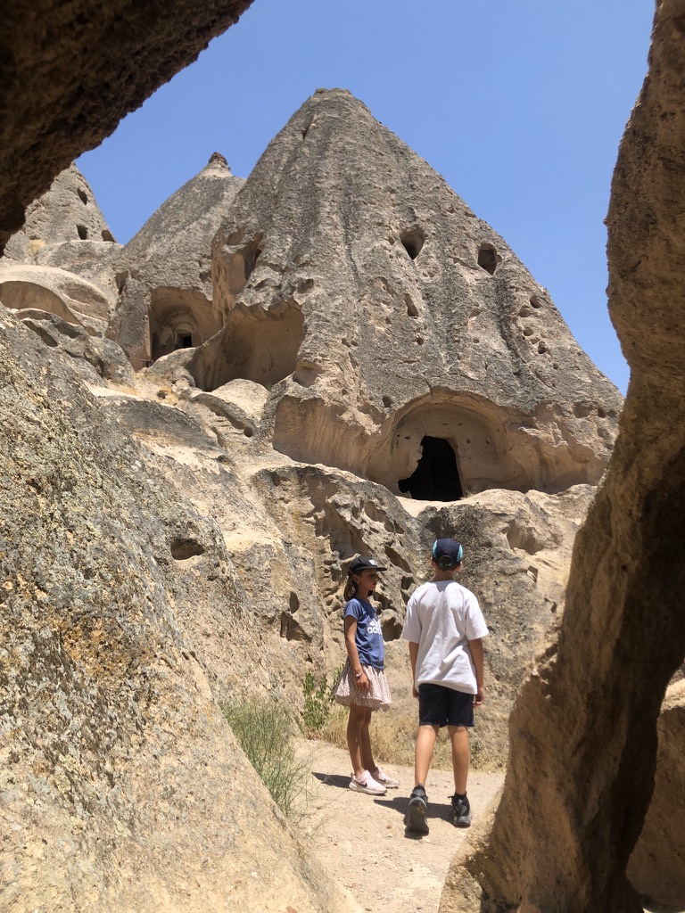Le lendemain, on se lance dans une marche improvisée vers le Göreme Open Air Museum. Finalement, une fois au musée en question, on décide de ne pas entrer et de plutôt laisser les enfants se promener et jouer dans les sentiers un peu partout autour des rochers. On rencontre de beaux chevaux, fait une petite visite au parc et termine le tout avec notre valeur sûre, une autre boisson en terrasse en fin de journée.