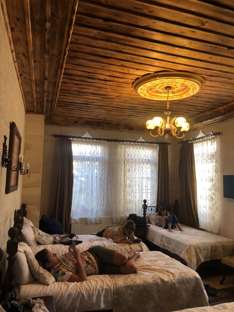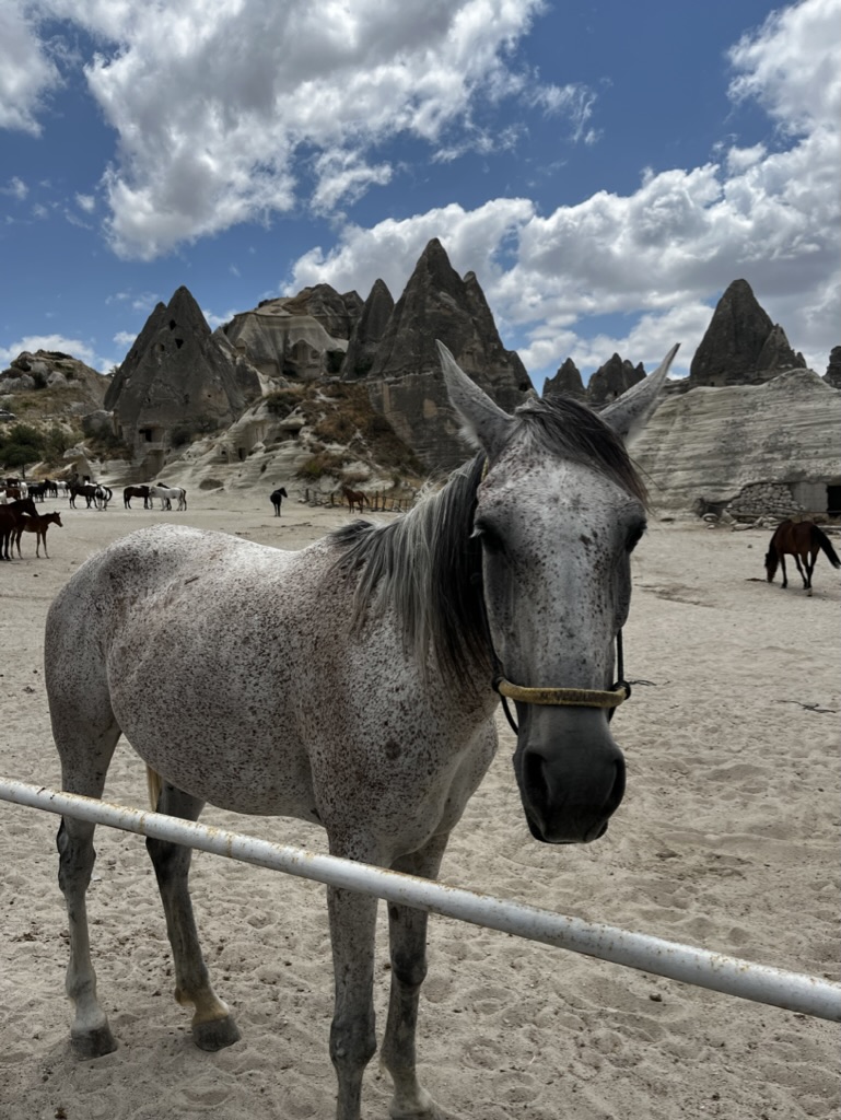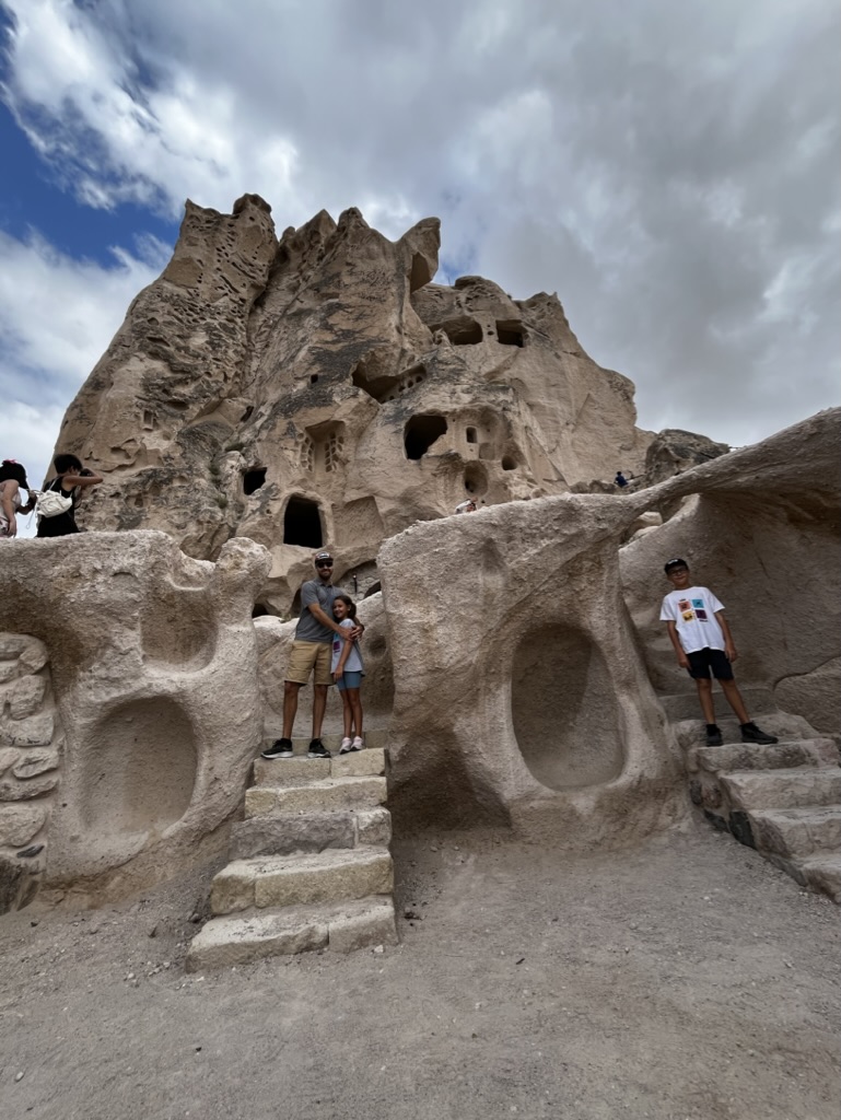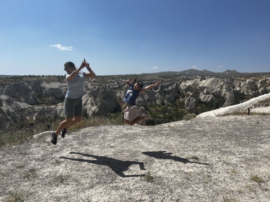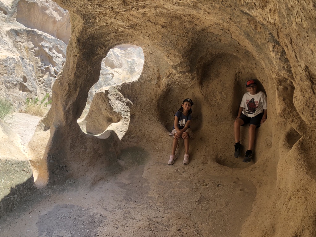 Le lendemain, on se lance dans une marche improvisée vers le Göreme Open Air Museum. Finalement, une fois au musée en question, on décide de ne pas entrer et de plutôt laisser les enfants se promener et jouer dans les sentiers un peu partout autour des rochers. On rencontre de beaux chevaux, fait une petite visite au parc et termine le tout avec notre valeur sûre, une autre boisson en terrasse en fin de journée.